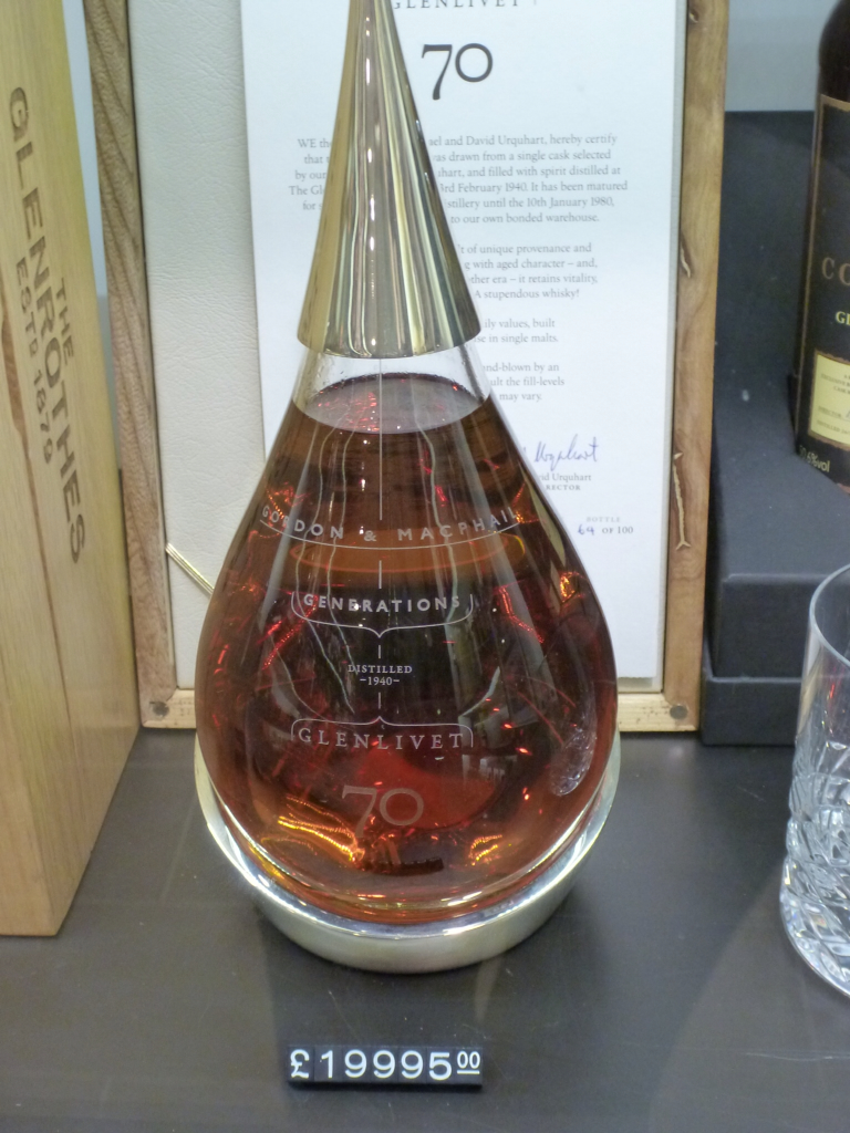 What would you like to wash it down with? I had a quick look in the wine and cigar room and spotted this lovely 70 year old vintage whiskey. It is a bargain at £19,995 a bottle.